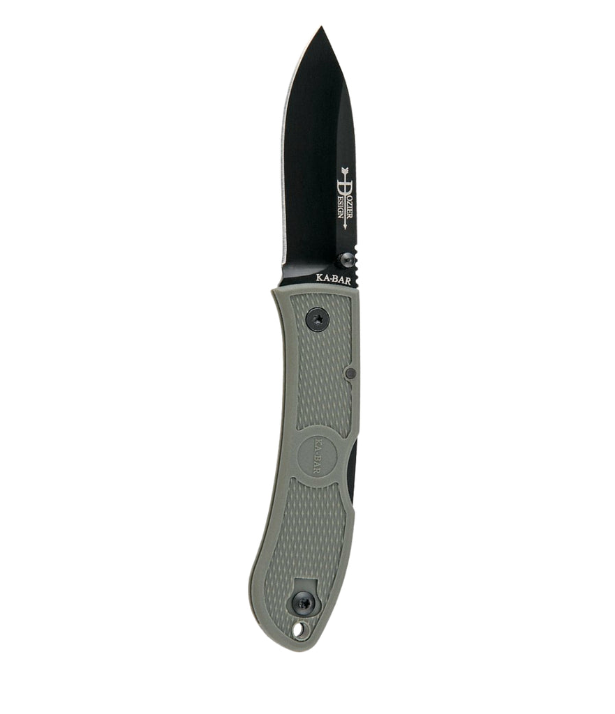 Features a reversible pocket clip and thumb stud. Please note this product was previously made with AUS 8A Stainless Steel and you may receive a Dozier with this steel if purchased from a third party. You will only receive this knife in D2 steel when purchased directly from KA-BAR.