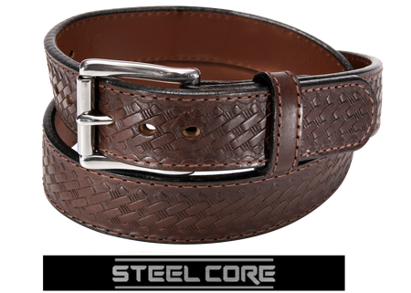 Brown Basketweave Steel Core Bullbelt® : Men's Basketweave Leather with Steel Core Belt 1.50"