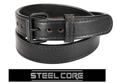 Black Tactical Steel Core Bullbelt® - Men's Brown Leather Steel Core Belt with Black Buckle 1.50"