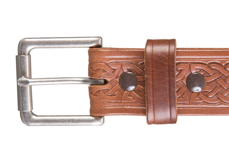 Brown Celtic Bullbelt® : Leather Belt with Celtic Design 1.50"
