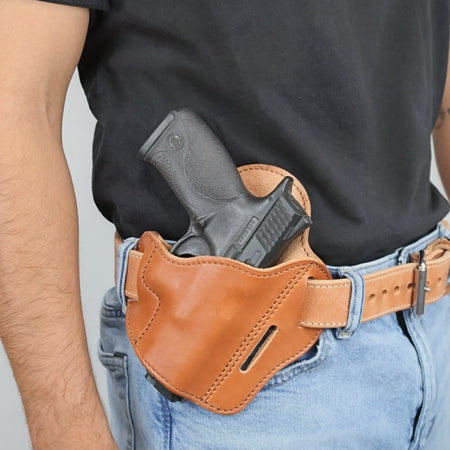 Stitched Roughcut Holster Belt & Leather Pancake Holster Set - Natural Golden Brown