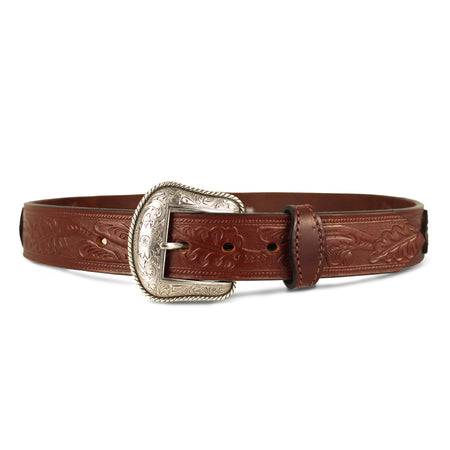 Brown Western Oak Leaf Pattern Leather Belt - 1.5"