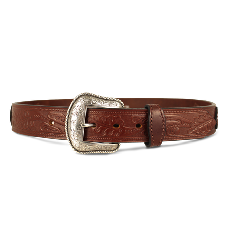 Western Oak Leaf Pattern Leather Belt - 1.5"